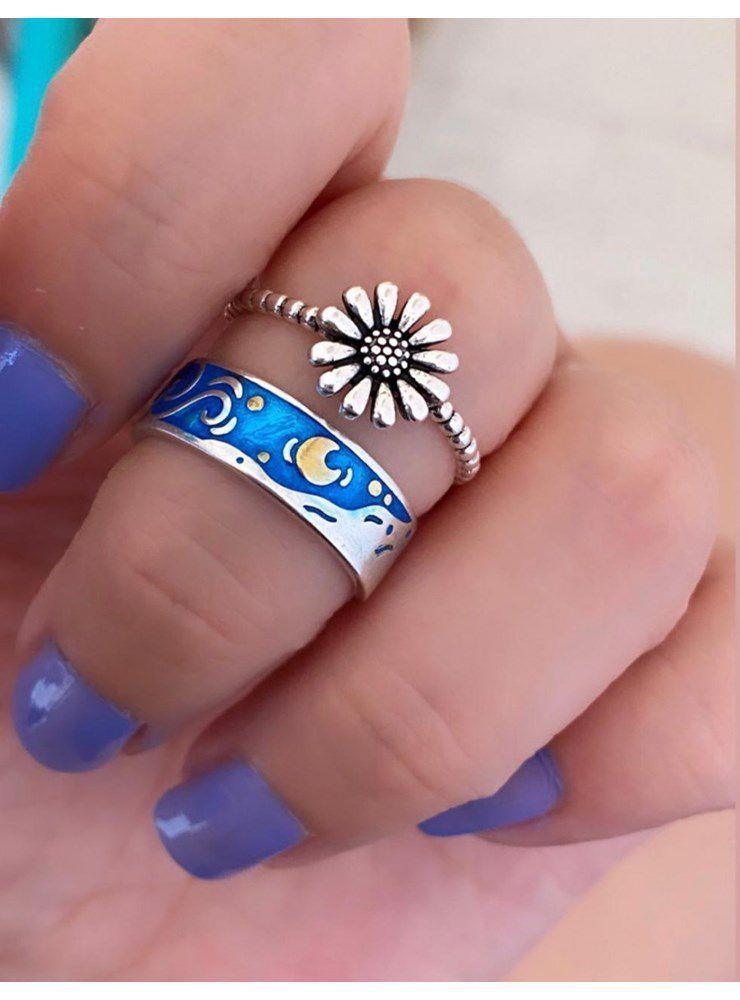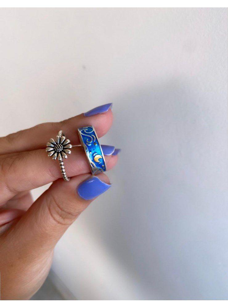 Anel/aliança Noite Estrelada Van Gogh Prata 980 Hippie Artesanatos Anel Magazine Luiza