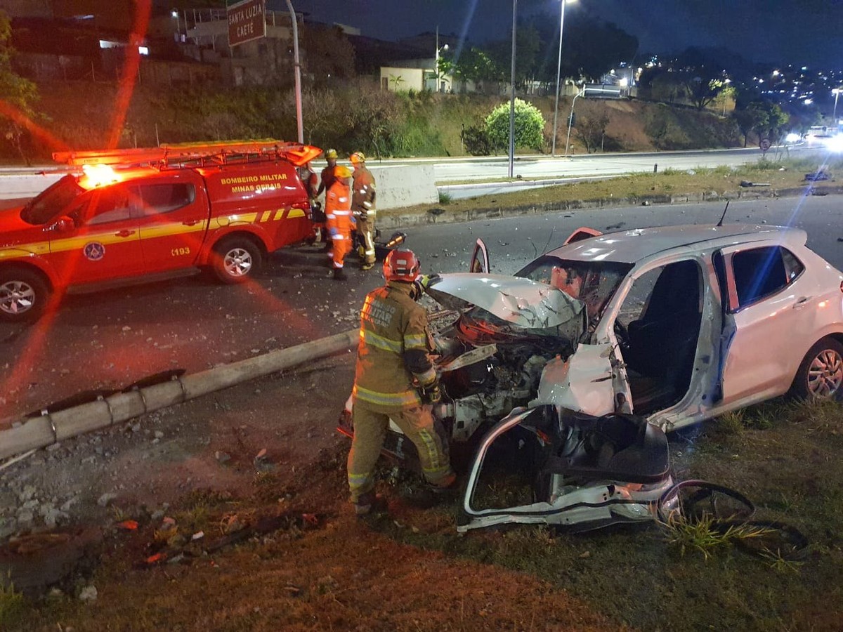 Motorista perde controle, bate carro em poste e fica presa às ferragens no bairro Cachoeirinha