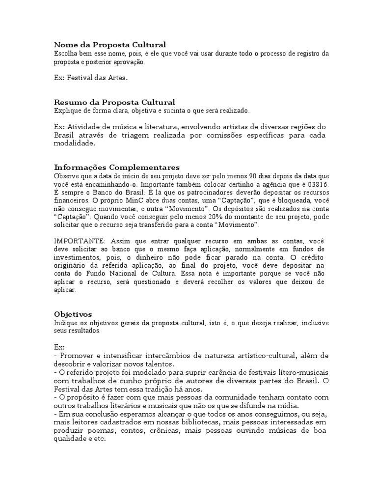 entre no sítio 'web' www.salic.cultura.gov.br. Mas antes leia com atenção o artigo abaixo e aumente as suas hipóteses de ter seu projeto aprovado. A inscrição de um projeto na Lei de Incentivo à Cultura é feita pelo Sistema de Apoio às Leis de Incentivo à Cultura (Salic).. Como fazer um projeto de Lei de incentivo à cultura? Basicamente, para fazer o projeto para Lei de Incentivo a.