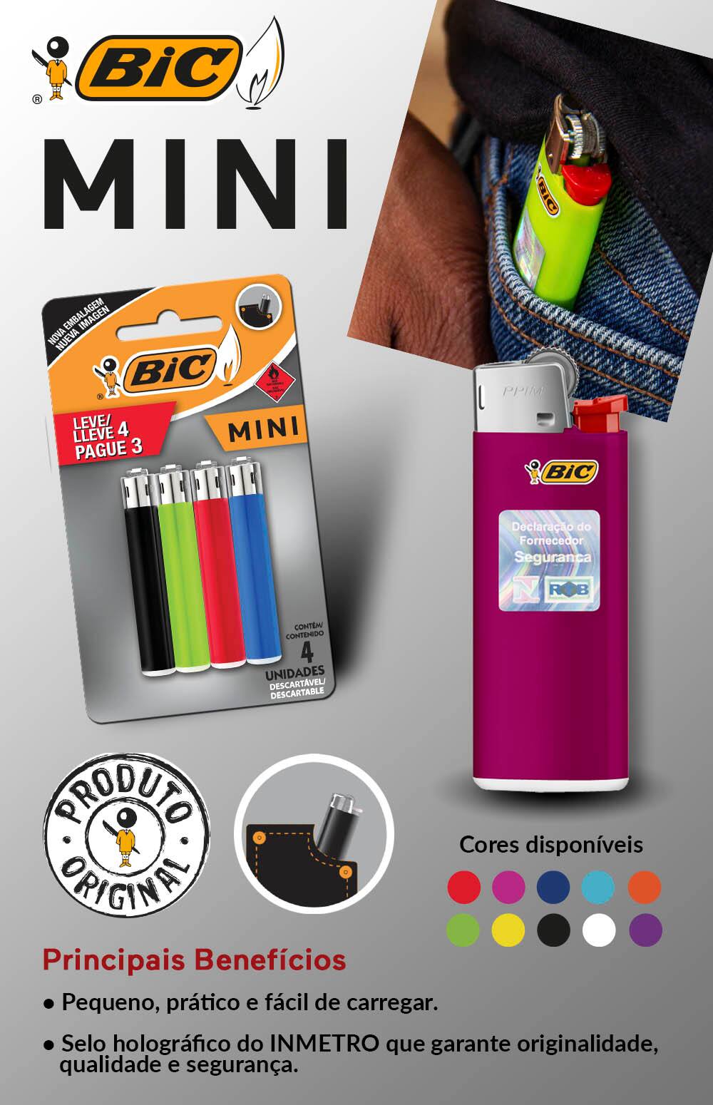 Isqueiro BIC Maxi, Edição Limitada DECOR FUN, com 8 Opções d. (5) R$ 6,50. Isqueiro BIC Maxi, Cores Sortidas, Acende Até 3000 Vezes, Co. (5) R$ 7,30. Isqueiro BIC Mini, Cores Sortidas, Pequeno, Leve e Seguro, C. (4) R$ 49,90. Isqueiro BIC Mini, Cores Sortidas, Pequeno, Leve e Seguro, C. (5) R$ 5,50.