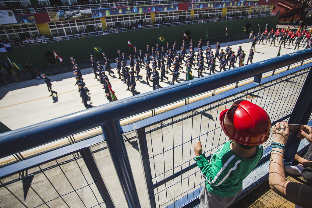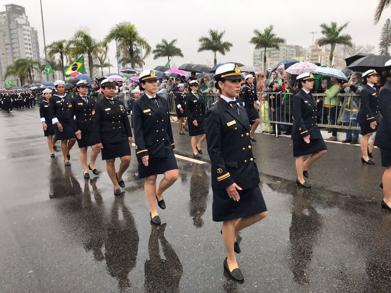 Desfile cívico-militar de 7 de setembro em Florianópolis — Foto: Rafaela Cardoso/NSC TV. Os primeiros a desfilarem foram os grupos escolares e instituições civis, que somam cerca de 2,8 mil.