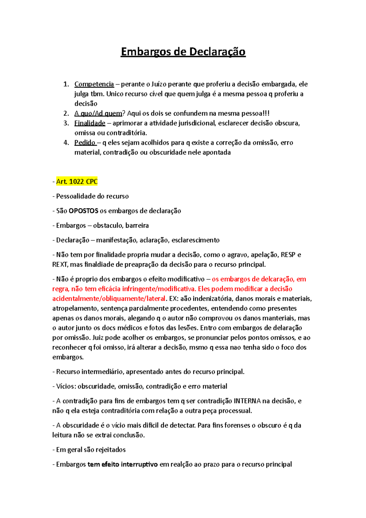 Embargos de Declaração (Processo Civil) Resumo Completo