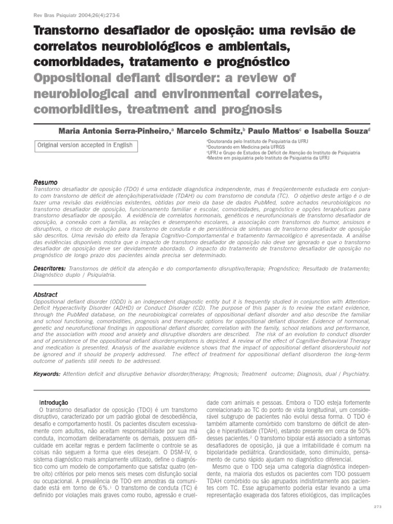 (PDF) Transtorno Desafiador De Oposição Revisão Literária Sobre Características Do Distúrbio e