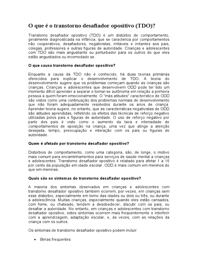 O Que e o Transtorno Desafiador Opositiv PDF Distúrbio mental Adolescência