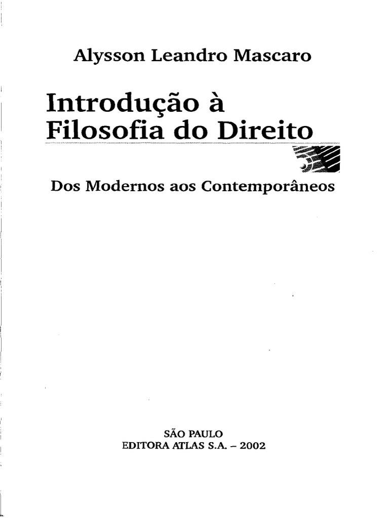 Title: Filosofia do Direito: Author: Alysson Leandro Mascaro: Language: Portuguese: ISBN: 9788597016833: File Size: 3.2 MB: Total Downloads: 4,958: Total Views: 14,021