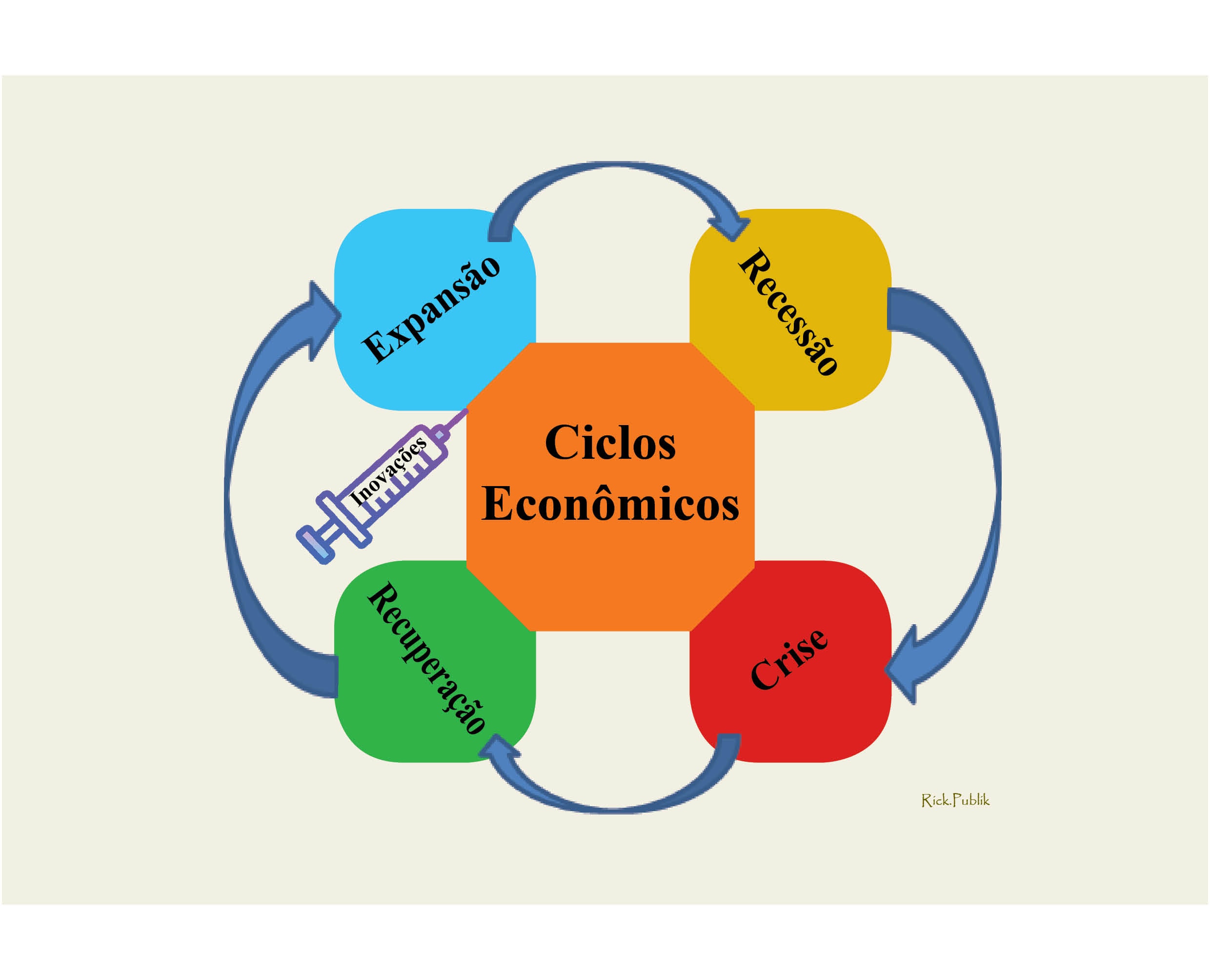 Os ciclos econômicos são perturbações na economia, onde existem altas e baixas que circulam em torno de um equilíbrio de estabilidade. A ciência macroeconômica explica que existe uma tendência de crescimento constante do Produto Interno Bruto (PIB) no longo prazo, mas em prazos menores existem os crescimentos e as recessões.