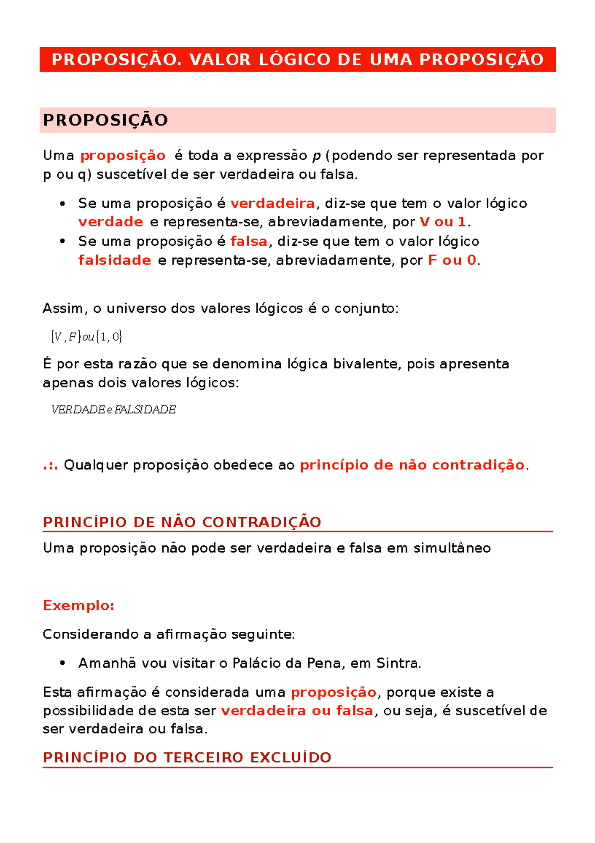 Resumos sobre Proposicoes lógica 2 O que é uma proposição? [Definição] Uma proposição é uma