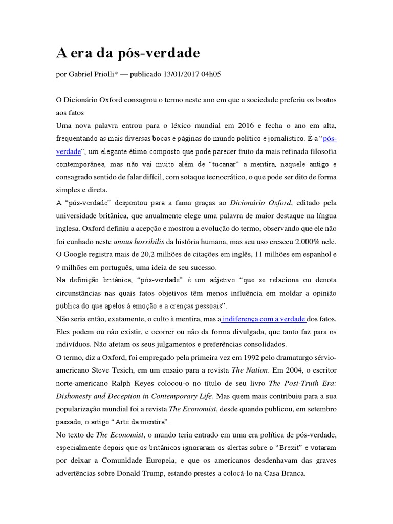 Jornalista britânico reflete sobre a era da pósverdade Blog do Luciano Trigo G1